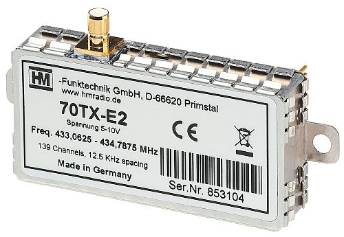 The 70TX-E2 is a professional 500mW narrow band FM radio transmitter according to EN 300113 and has been improved in many respects compared to its predecessor 70TX-E. The innovative concept combines the advantages of the DDS with those of the synthesizer in a unique way. The signal digitization offers a resolution of 12 bit. Further signal processing is completely digital. The result is an almost perfect RF signal with excellent transmission characteristics for both analog and digital signals.