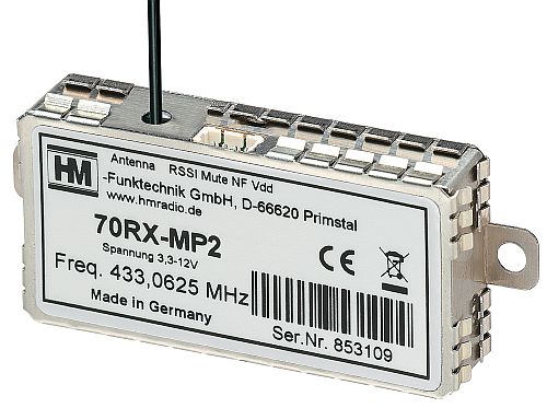 The excellent RF sensitivity allows signal transmissions over very long distances. 10mW output power of 70TX-M1 or 70TX-S together with the remote control unit FSM24 is f.e. sufficient for a free field range of more than 2000 m. The receiver is also characterized by a very high selectivity, which allows the operation of many devices at the same place.
